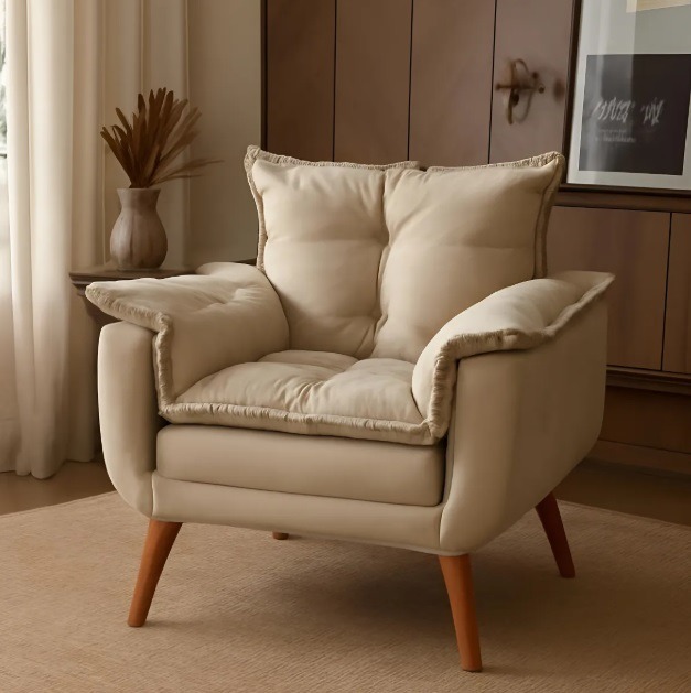 Poltrona Opala Decorativa para Sala, Escritório - Em Tecido Suede